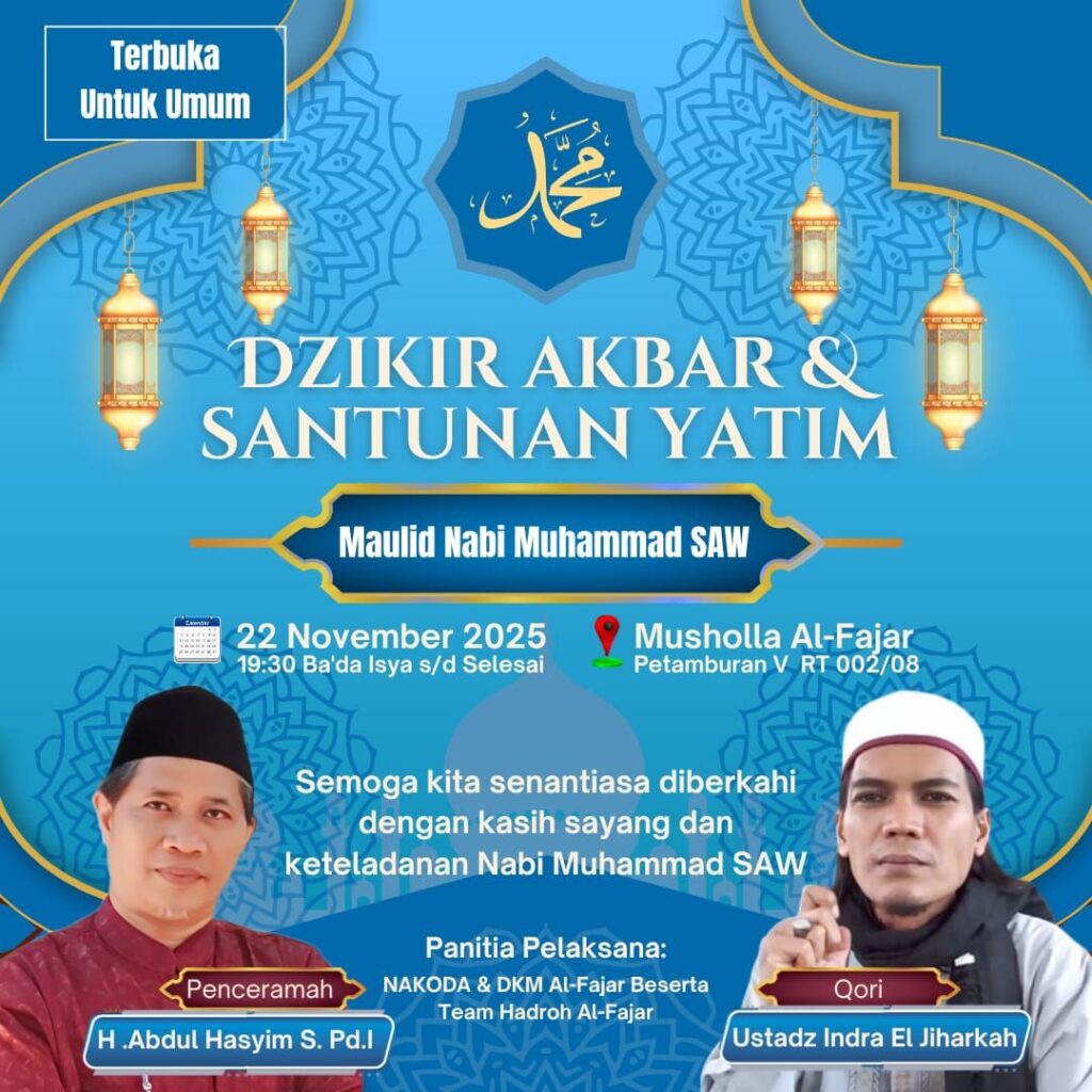Jakarta, Pilarpos.info — Dalam semangat kebersamaan dan kepedulian sosial, Karang Taruna Nakoda 02 bersama warga RW 08 akan menyelenggarakan kegiatan Santunan Anak Yatim dan Peringatan Maulid Nabi Muhammad SAW pada tanggal 22 November 2025.