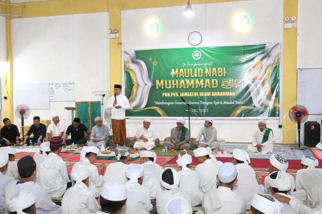 Polresta Barelang, pilarpos.info – Polresta Barelang menghadiri kegiatan peringatan Maulid Nabi Muhammad SAW yang digelar di Pondok Pesantren Jamiatul Ulum Arrahman, Kecamatan Sekupang. Kegiatan yang berlangsung khidmat ini dihadiri langsung oleh Kapolresta Barelang Kombes Pol Zaenal Arifin, S.I.K., beserta jajaran pejabat utama Polresta dan Polsek Sekupang. Rabu (10/09/2025).