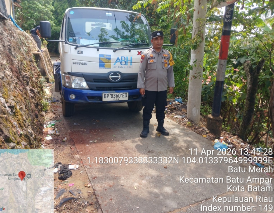 PILARPOS.INFO | KOTA BATAM – Kepolisian Sektor Batu Ampar melaksanakan kegiatan pendistribusian air bersih hari ke-79 kepada warga terdampak gangguan pasokan air di Kelurahan Tanjung Sengkuang dan Kelurahan Batu Merah, Kecamatan Batu Ampar. Kegiatan ini merupakan bentuk kepedulian dan pelayanan Polri kepada masyarakat dalam memenuhi kebutuhan dasar air bersih. Sabtu, (11/04/2026).