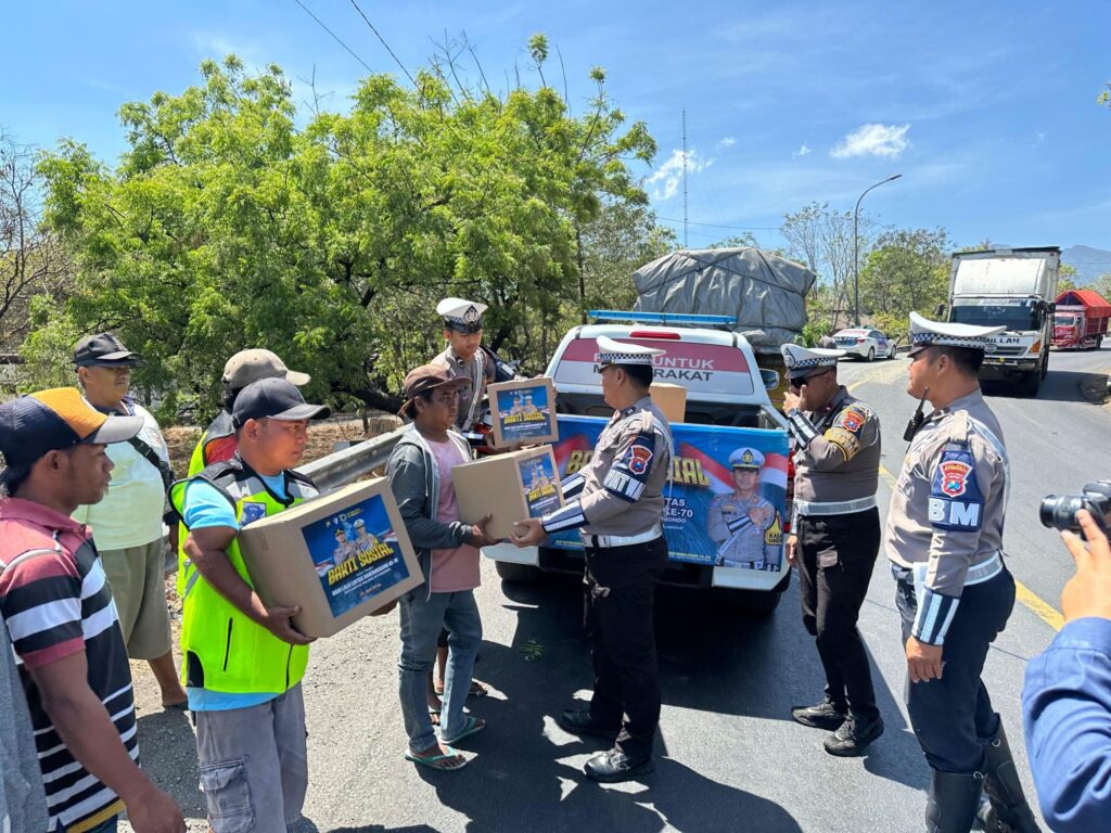 Home » Hari Lalu Lintas Bhayangkara ke-70 Polres Situbondo Berbagi Sembako dan Rompi untuk Supeltas