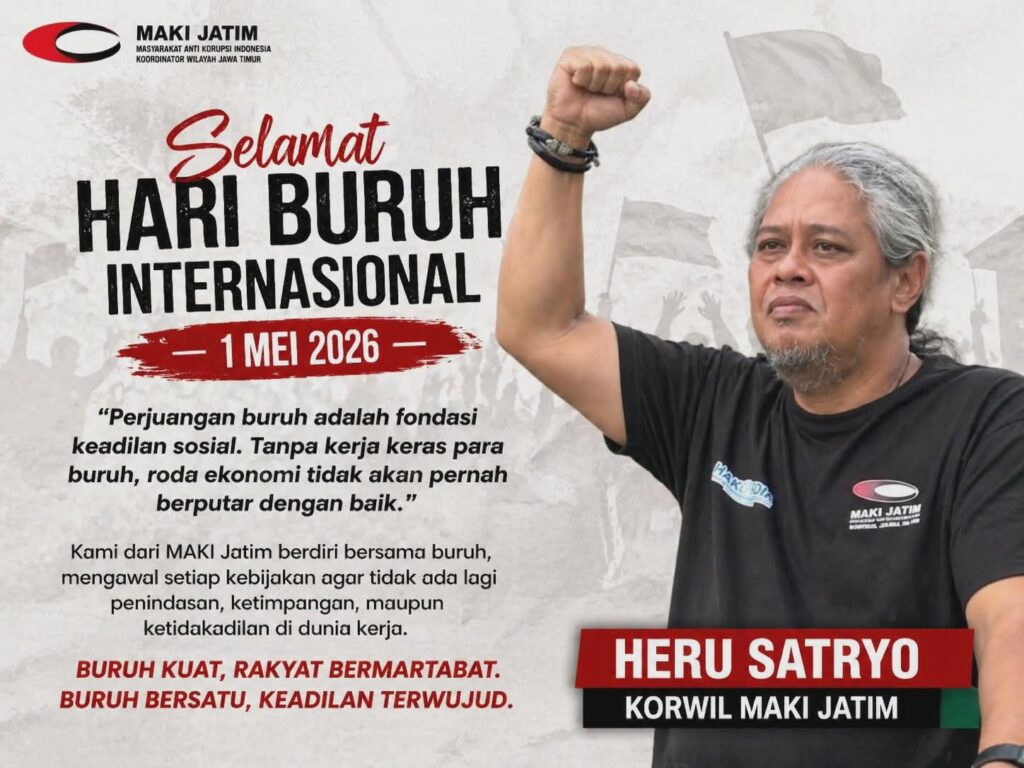 Heru Satriyo, Ketua MAKI Jawa Timur, menegaskan bahwa perjuangan buruh adalah fondasi keadilan sosial. Pernyataan ini bukan sekadar retorika, melainkan peringatan keras: jika buruh dilemahkan, maka bangsa ini sedang melemahkan dirinya sendiri. Tidak ada kemerdekaan yang utuh jika masih ada rakyat yang tidak merdeka secara ekonomi dan sosial.