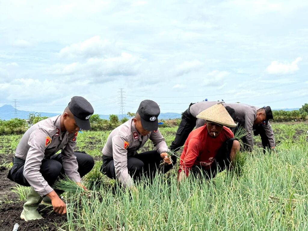Home » ‘Live In’ : Siswa Diktukba SPN Polda Jatim Bantu Petani Bawang Merah di Nganjuk
