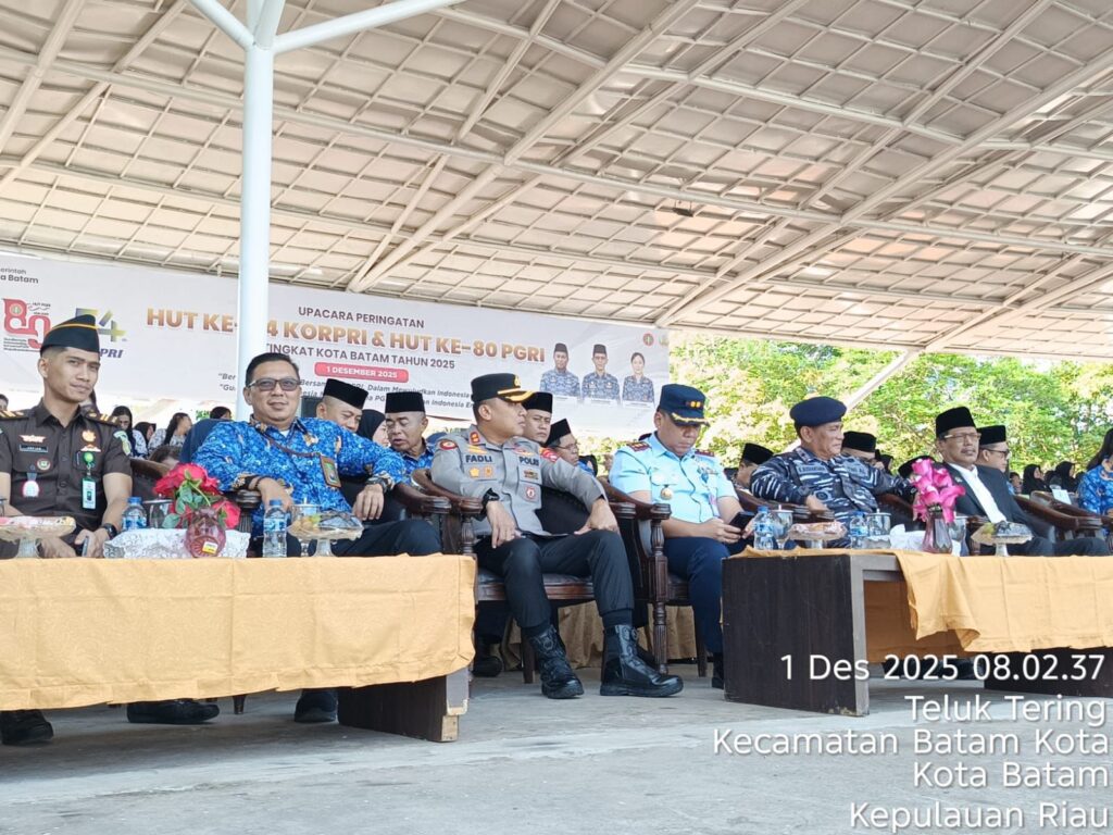 Kegiatan berlangsung khidmat dan penuh makna, dengan kehadiran Walikota Batam Dr. H. Amsakar Achmad, S.Sos., M.Si., Wakil Walikota Batam Li Claudia Chandra, Ketua DPRD Kota Batam H. Muhammad Kamaluddin, S.P.I., serta sejumlah pejabat TNI-Polri dan instansi terkait. Upacara juga diikuti oleh peserta dari Korps Pegawai Republik Indonesia (Korpri) dan Persatuan Guru Republik Indonesia (PGRI).