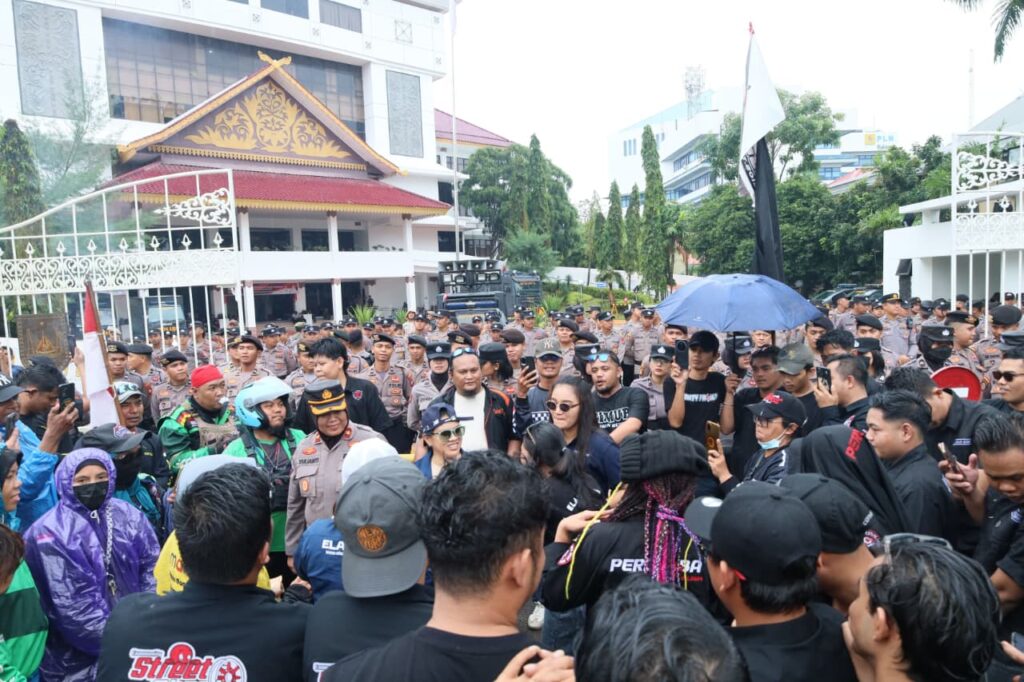 Batam, pilarpos.info – Polda Kepri bersama Polresta Barelang melaksanakan pengamanan aksi unjuk rasa yang dilakukan oleh Aliansi Driver Online Kota Batam (ADOB) di Kota Batam. Aksi tersebut berlangsung di Gedung Pemko Batam, pada Rabu (17/9/2025).