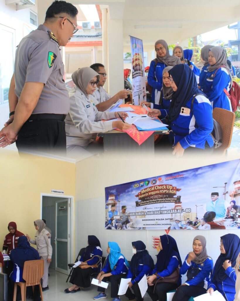 PILARPOS.INFO | BOJONEGORO – Menjelang peringatan Hari Buruh Internasional atau May Day, Polres Bojonegoro Polda Jatim bekerja sama dengan RS Bhayangkara Wahyu Tutuko menggelar layanan pemeriksaan kesehatan (medical check up) gratis bagi para pekerja yang tergabung dalam Konfederansi Serikat Pekerja Seluruh Indonesia (KSPSI).