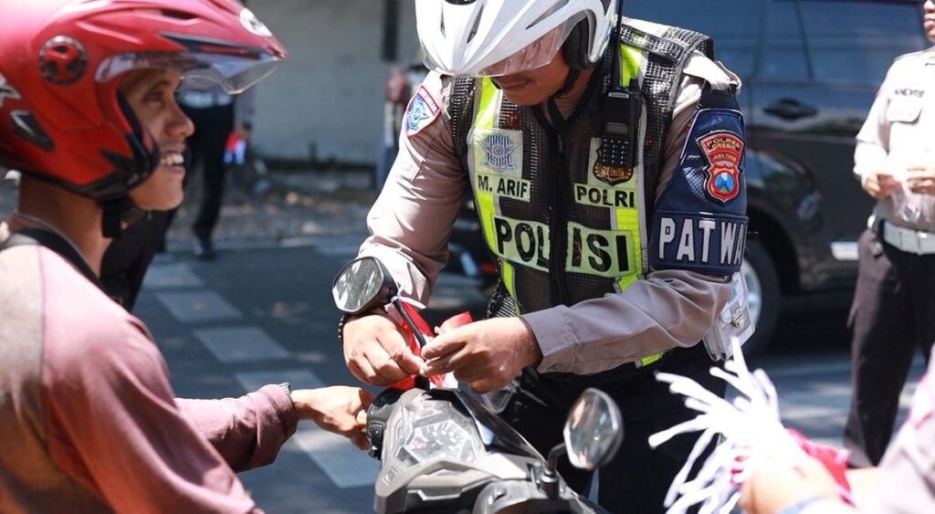 Home » Polres Gresik Bagikan Bendera dan Pin Merah Putih di Jalan Tanamkan Semangat Kemerdekaan