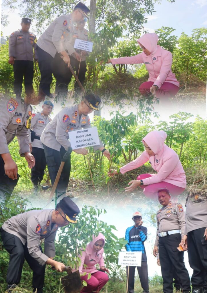 PILARPOS.INFO | TRENGGALEK – Polres Trenggalek Polda Jatim menggelar aksi tanam ratusan pohon beringin di kawasan lahan kritis untuk menjaga sumber air di masa mendatang. Aksi ini dilakukan untuk memperingati Hari Bumi se dunia.