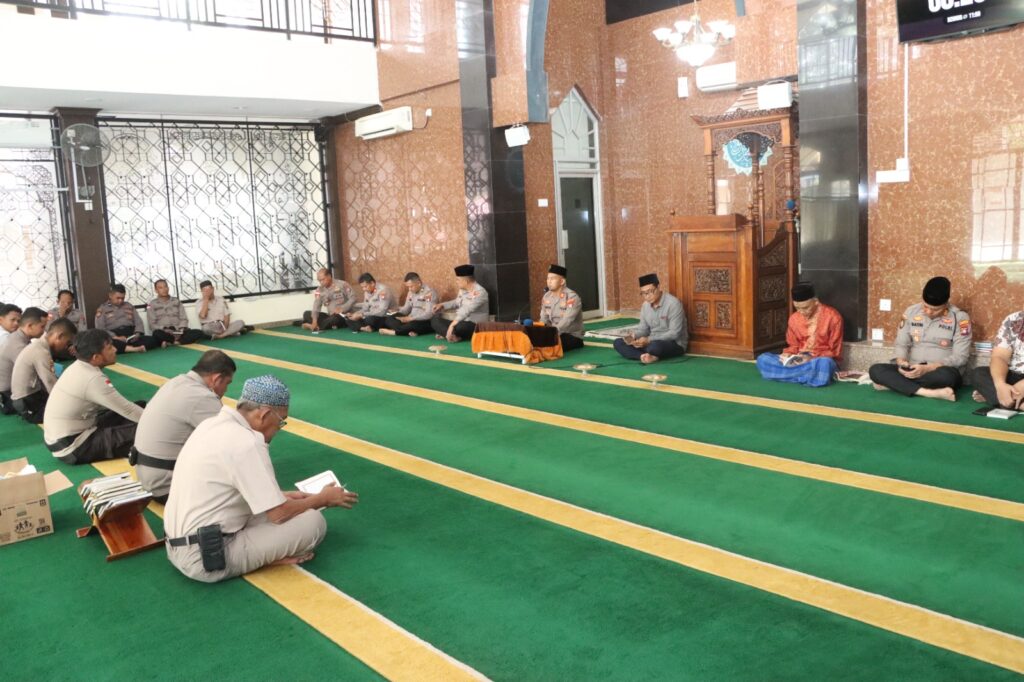 Dalam pelaksanaan kegiatan Binrohtal di Masjid Jihadul Mucharam, acara diawali dengan pembukaan, pembacaan surat Yasin, dan dilanjutkan dengan tausiyah yang disampaikan oleh Ustadz H. Muhammad Arifin, S.Ag., H.A. dengan tema “Diterima atau Tidaknya Salat Kita.” Dalam ceramahnya, beliau mengingatkan pentingnya keikhlasan dan kekhusyukan dalam beribadah, serta mengajak seluruh personel Polri untuk menjadikan shalat sebagai pedoman dan pengingat dalam menjalankan tugas melayani masyarakat.