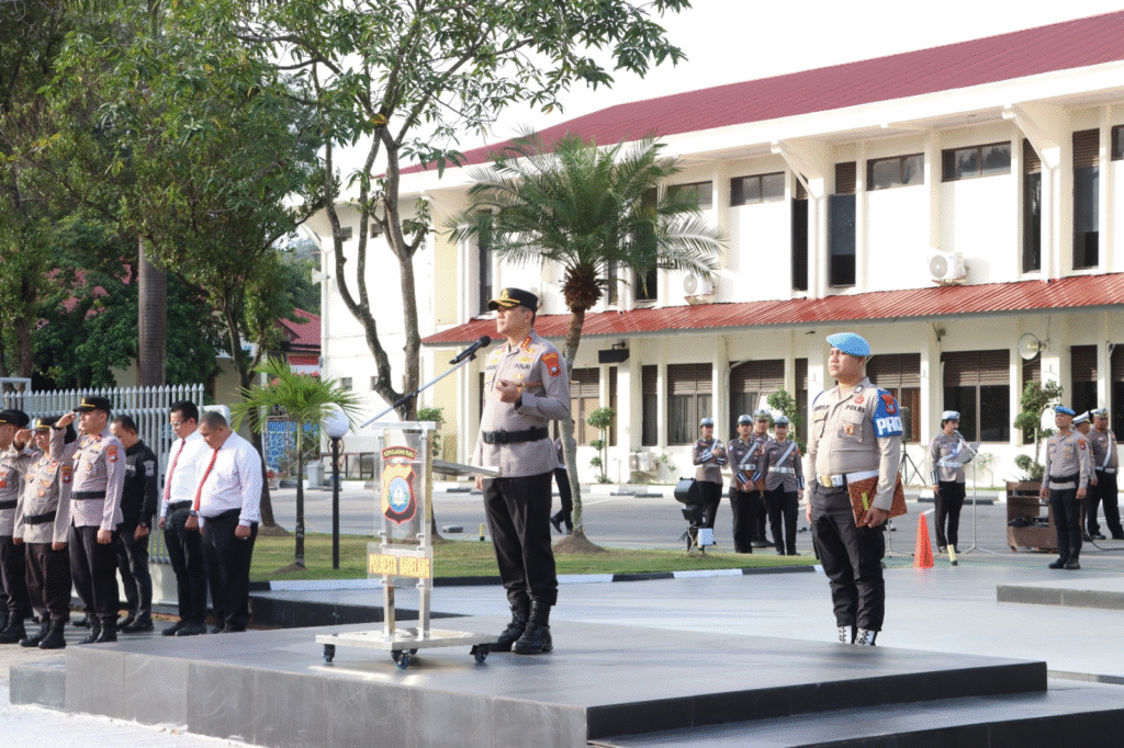 Batam, pilarpos.info – Polresta Barelang melaksanakan Upacara Bendera Hari Kesadaran Nasional sebagai wujud pembinaan tradisi dan peningkatan disiplin personel Polri. Kegiatan upacara ini dipimpin langsung oleh Kapolresta Barelang Kombes Pol Anggoro Wicaksono, S.H., S.I.K., M.H., selaku Inspektur Upacara, dan diikuti oleh seluruh personel Polresta Barelang beserta jajaran. Upacara berlangsung khidmat di Lapangan Upacara Polresta Barelang, Senin, (19/01/2026).