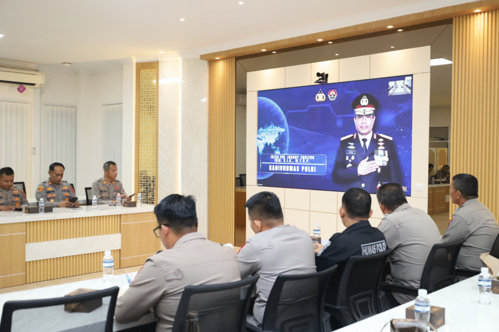 Batam, pilarpos.info – Polresta Barelang mengikuti kegiatan Zoom Meeting Dialog Penguatan Internal Polri ke-1 dengan tema “Tantangan Hukum di Era Artificial Intelligence” yang dilaksanakan di Ruang Rupatama Wicaksana Legawa Lantai 3, dengan melibatkan Wakapolresta Barelang, para Pejabat Utama (PJU), serta Kapolsek jajaran Polresta Barelang, Selasa, (07/04/2026).