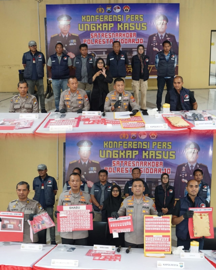 Kapolresta Sidoarjo Kombes. Pol. Christian Tobing pada konferensi pers menyampaikan, para tersangka yang diamankan berjenis kelamin laki-laki dan mayoritas berperan sebagai kurir maupun pengedar.