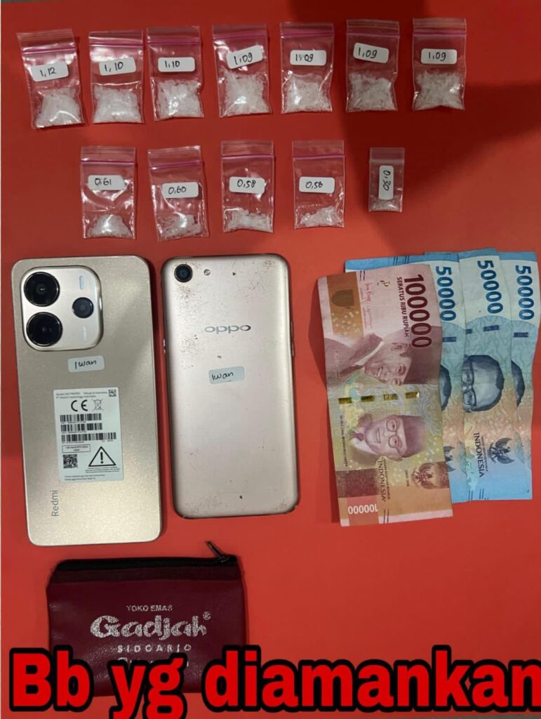 Selain sabu, polisi juga mengamankan barang bukti berupa tiga unit telepon seluler, uang tunai Rp250.000 yang diduga hasil penjualan sabu, serta satu dompet warna merah yang digunakan untuk menyimpan narkotika tersebut.