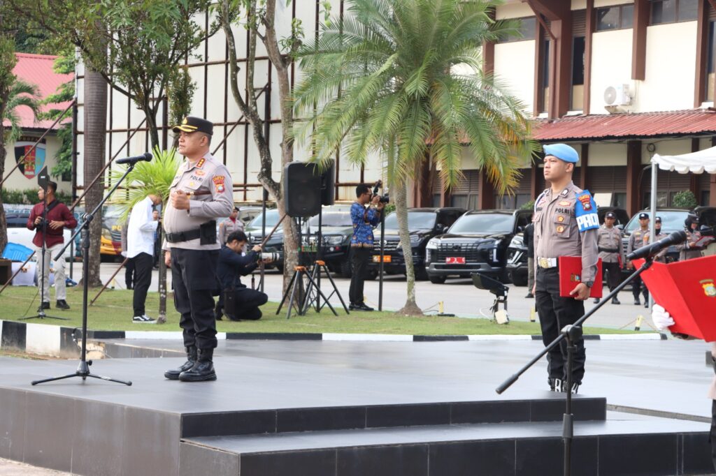 Batam, pilarpos.info – Polresta Barelang menggelar Upacara Bendera 17 Hari Bulan Tingkat Kota Batam, bertempat di halaman Mako Polresta Barelang. Kegiatan berlangsung dengan khidmat dan dihadiri oleh unsur Forum Koordinasi Pimpinan Daerah (Forkopimda) Kota Batam, pimpinan instansi vertikal, TNI, Polri, ASN, serta perwakilan lembaga pemerintahan di Kota Batam. pada Jumat (17/10/2025) pagi.