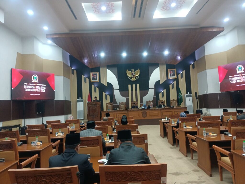 menggelar rapat paripurna penyampaian nota pengantar Kebijakan Umum Anggaran dan Prioritas Plafon Anggaran Sementara (KUA-PPAS) 2026 di Gedung DPRD Kabupaten Pasuruan, Jumat (15/08/2025).